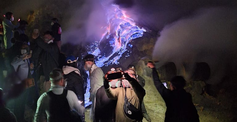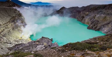 Ijen Crater (Kawah Ijen): Located near Banyuwangi, famous for its striking turquoise acidic crater lake and the unique natural phenomenon of the "Blue Fire" at night.