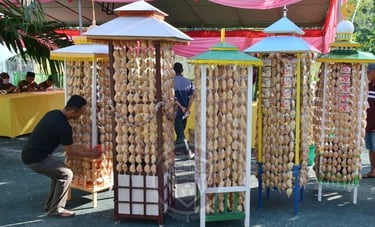 Walima: A massive celebration during the Prophet Muhammad’s birthday (Maulid Nabi). Locals prepare huge wooden structures shaped like boats or mosques, piled high with traditional cakes and food, which are paraded to the mosque and distributed.