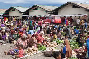 Wamena Market: A bustling traditional market where tribespeople exchange sweet potatoes, traditional crafts, and sometimes even live piglets.