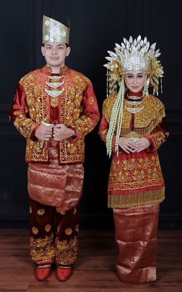 Pakaian Adat Melayu Jambi The traditional attire is a refined form of Malay clothing, heavily influenced by the former Jambi Sultanate's culture. It is rich in luxurious fabrics and intricate gold embroidery.