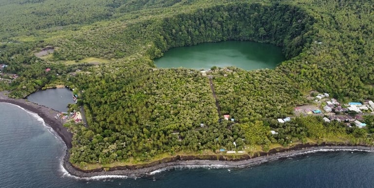 Lake Tolire: A mysterious, emerald-green crater lake at the foot of Mount Gamalama. Local legend says it is inhabited by white crocodiles.