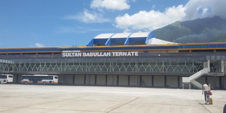 Sultan Babullah Airport (TTE): Located in Ternate at the foot of the volcano. It is the main gateway, with flights to Jakarta, Makassar, Manado, and Ambon.