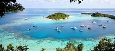 Topography: The islands are generally low-lying with pristine white-sand beaches, clear waters, and coastal mangroves. The climate is tropical, characterized by high humidity.