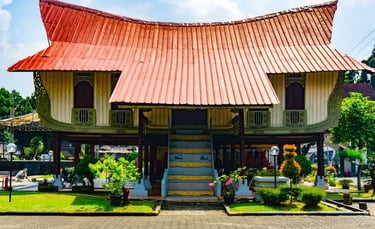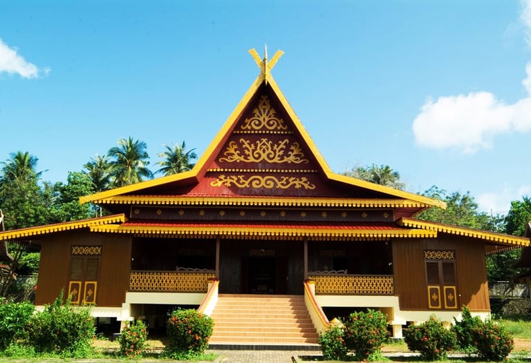 Rumah Selaso Jatuh Kembar This traditional hall is the most prominent Rumah Adat of Riau. It is a stilt house built on strong wooden piles, designed to adapt to Riau's geographical conditions of swamps and rivers. Its name, "Twin Sunken Hall," refers to the Selaso (porch/veranda) that surrounds the main structure, where the floor level is lower than the central room. It primarily functions as a place for community meetings, traditional ceremonies, and social gatherings, symbolizing togetherness and shared governance.