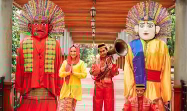 Ondel-Ondel: Large, colorful, effigy puppets, often featuring a male and female pair. They are icons of Jakarta and are traditionally used in street parades and festivals to ward off evil spirits.
