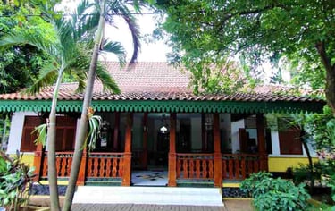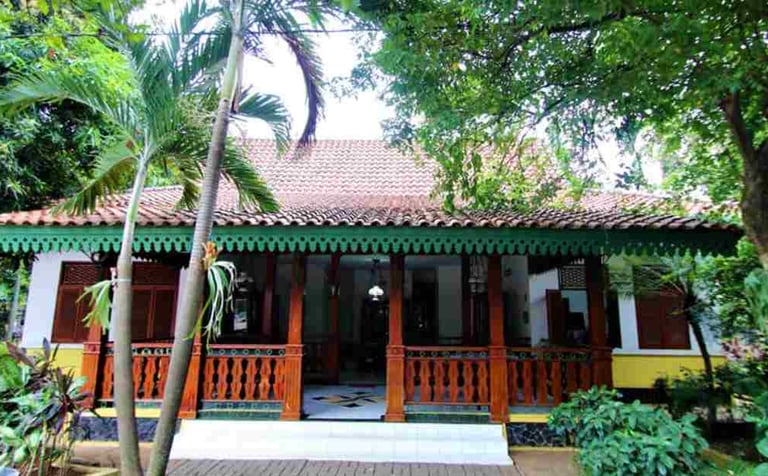 Rumah Kebaya This is the most representative traditional house of the Betawi people. It is a house built directly on the ground (non-stilt) with a distinguishing saddle roof that slopes sharply, resembling the folds of a traditional Kebaya blouse when viewed from the side—hence its name. The house is typically rectangular and features a wide, semi-open front porch (langkan or teras). The layout is divided into a semi-public front section and a private inner section.
