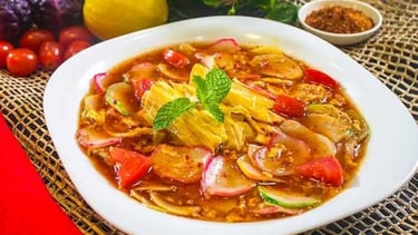 Seblak: A modern but extremely popular street food. It is made from wet kerupuk (crackers) that are boiled and stir-fried with eggs, vegetables, and other protein sources, famous for its intensely spicy and savory flavor, often including cikur (aromatic ginger).