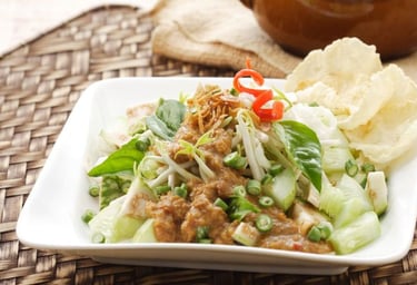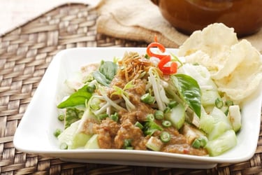 Karedok: A fresh vegetable salad, similar to Gado-Gado, but the vegetables are served raw (like cucumber, cabbage, long beans, and bean sprouts). It is dressed with a thick, savory peanut sauce seasoned with aromatic ginger (kencur).