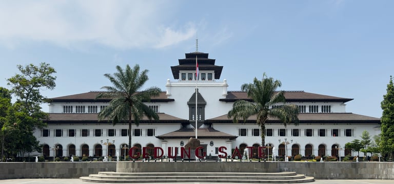Bandung's Gedung Sate: The iconic colonial-era governmental building, famous for its unique architecture and its spire topped with a satay ornament.