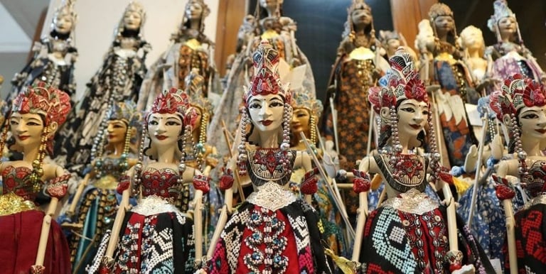 Wayang Golek: A traditional wooden puppet theater, distinct from the flat leather puppets (Wayang Kulit) of Central Java, used to tell historical epics and moral tales.