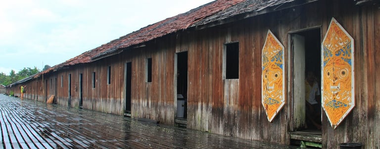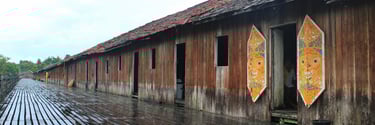 Rumah Betang (Longhouse): The traditional communal dwelling of many Dayak tribes, symbolizing collective living and defense.