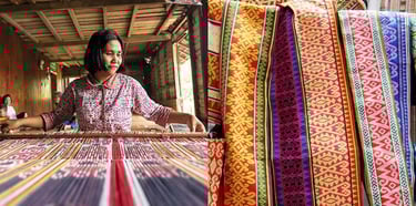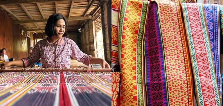 Tenun Ikat: Traditional hand-woven textiles, especially from Dayak communities, known for their complex patterns created by dyeing the threads before weaving.