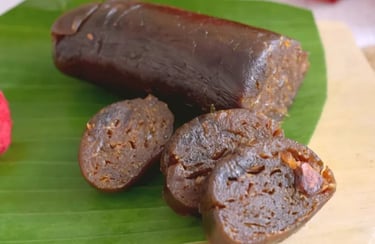 Lempok Durian: A popular regional sweet delicacy. It is a dense, sticky, and rich durian paste (similar to taffy or fruit leather), made by cooking durian flesh with sugar until it caramelizes and thickens.
